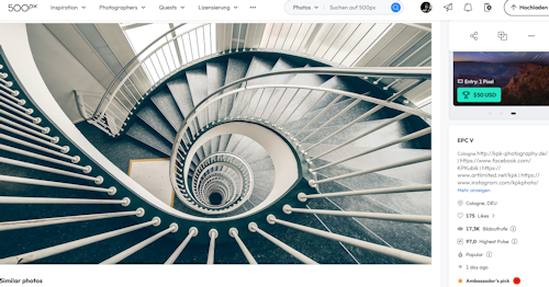 My image Goeth IX meanwhile received more than 130 k (130,000) image views at 500px. That's a cool figure, isn't it? Image at 500px.